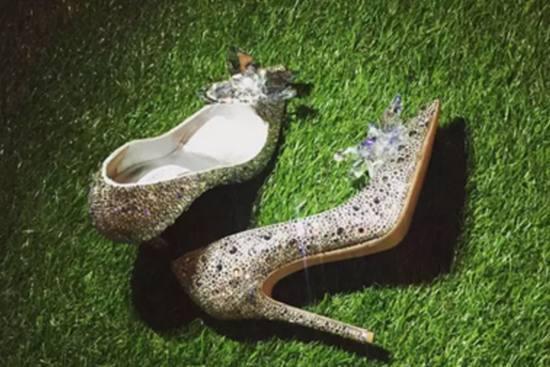 吴奇隆和刘诗诗的婚礼相当奢华,婚礼的细节无处不显露四爷对刘诗诗的爱,这双水晶鞋是Jimmy Choo庆祝20周年推出的新款,刘诗诗是全世界第一个穿上这个婚鞋女明星。