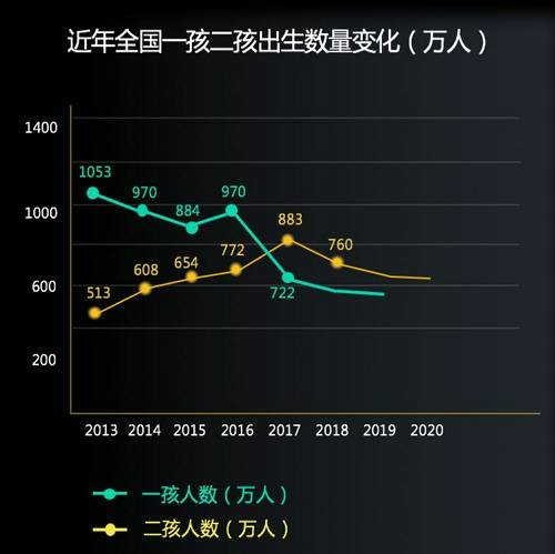 一孩跟二孩我们先不说,整个人口出生率确实在下滑,但是我们把一孩跟二孩的出生率在这边做一个轴线,发现一个特别有趣的一个现象。