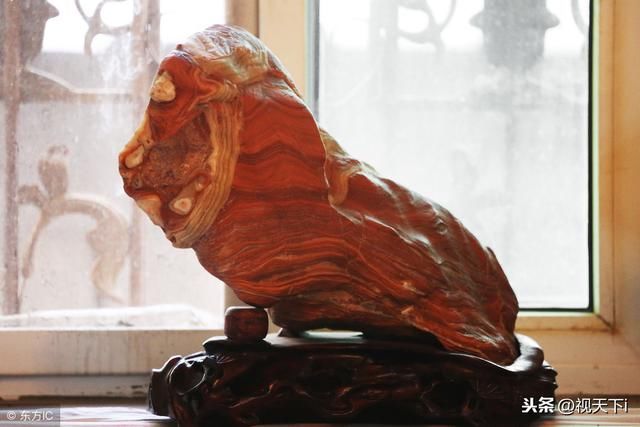 轮到张大哥讲话了,他说这一年来只捡了4块石头。然后带领大家到楼上欣赏他捡的奇石。在一间并不大的雅室里,摆放着大小不一的几十块奇石,石头虽然不多,但每一块都配了高档的底座。待灯光打开后,一块块奇石顿时让大家惊呆了,每一块奇石都有独到之处,论石质有石质,论造型有造型,流畅的线条,飘逸的纹饰,汇集了天然艺术之大成。