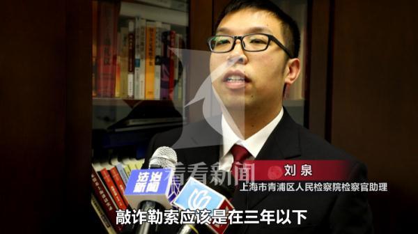 上海市青浦区人民检察院检察官助理刘泉:“敲诈勒索应该是在三年以下,处以有期徒刑拘役或者管制,并处罚金。具体到本案,大概在1年以下。”