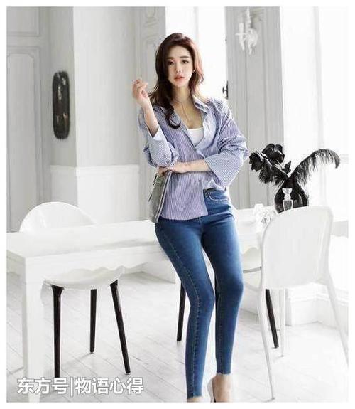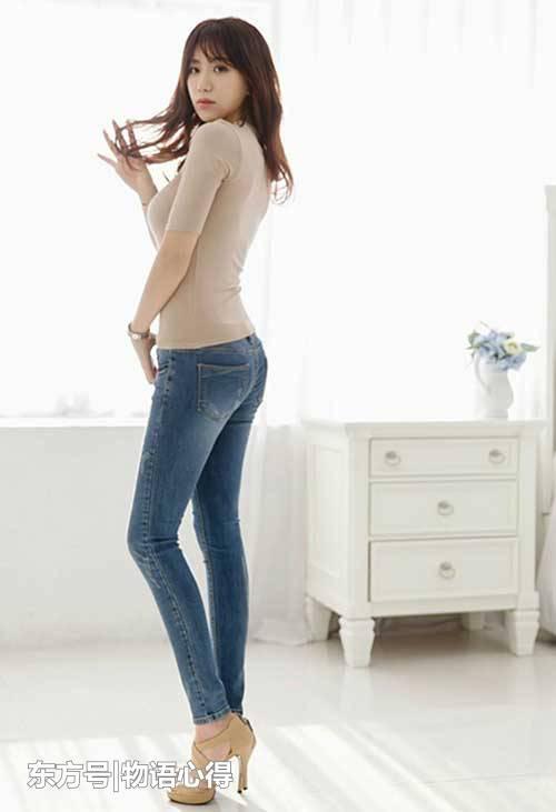 图1小姐姐姿态优美,在一间总体色调是白色的房间里,她的蓝色的牛仔裤显得很突出,深色代表着深沉,忧郁,高贵。同时也有休闲的感觉。身后的小桌子是欧式的风格,共有三个抽屉,样式有种北欧风情。模特的撩起头发的姿势,吸引力真的不小。