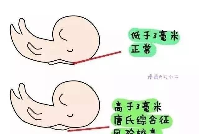 胎儿颈后透明层大于3毫米也就是说准妈妈在做NT检查时出现了异常,NT一般在孕12周左右建档时进行,被称为怀孕早期的胎儿排畸检查项目。