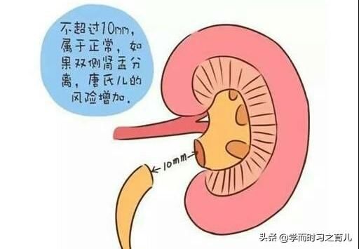 准妈妈在做胎儿大排畸检查时,医生还会特别关注胎儿的肾盂分离情况,一般宝宝双侧肾盂分离不超过10mm考虑为正常的现象,而双侧肾盂分离大于10mm,则代表胎儿患有唐氏综合征的风险会加大。