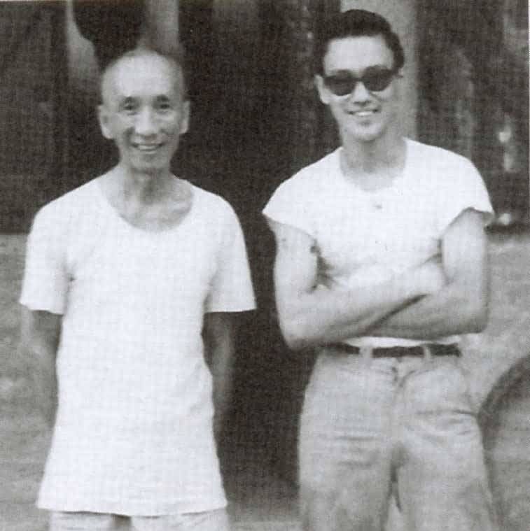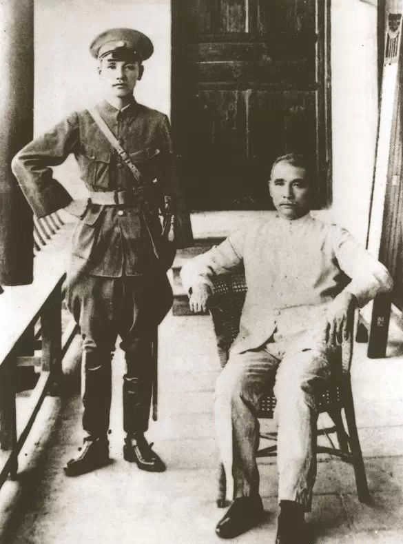 坐在椅子上的孙中山先生与年轻的蒋介石
