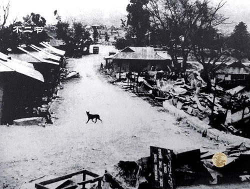 这张照片拍摄于太平洋战争期间,1944年3月日军对英帕尔实施了入侵,日军与英印联军在英帕尔展开了激烈的对抗,照片中为战火燃烧过后的英帕尔科希马街市,这座城市是日军进攻英帕尔的主要目标之一。