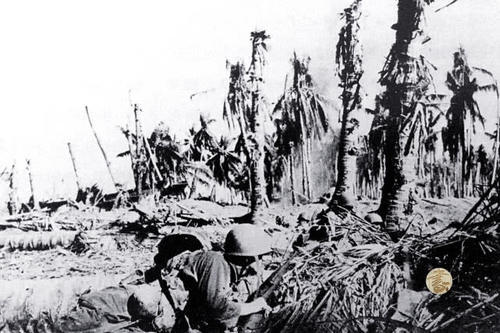 这张照片拍摄于太平洋战争期间,1944年5月美军进攻新几内亚西部萨米地区,照片中为美军部队向着瓦克德日军阵地推进,一片椰林被火炮夷为平地。