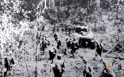 欢迎来到不二书旧影时光,今天为各位读者朋友们分享的这一组图组,是来自于二战太平洋战争中的老照片。通过这一组照片,我们可以来回顾一下这段历史中留存下来的影像。这张照片拍摄于太平洋战争期间,1944年5月,英印联军在科希马—英帕尔前线实施反攻,照片中为英军对日军阵地进行炮击,照片中能够看到英军的坦克正在推进。
