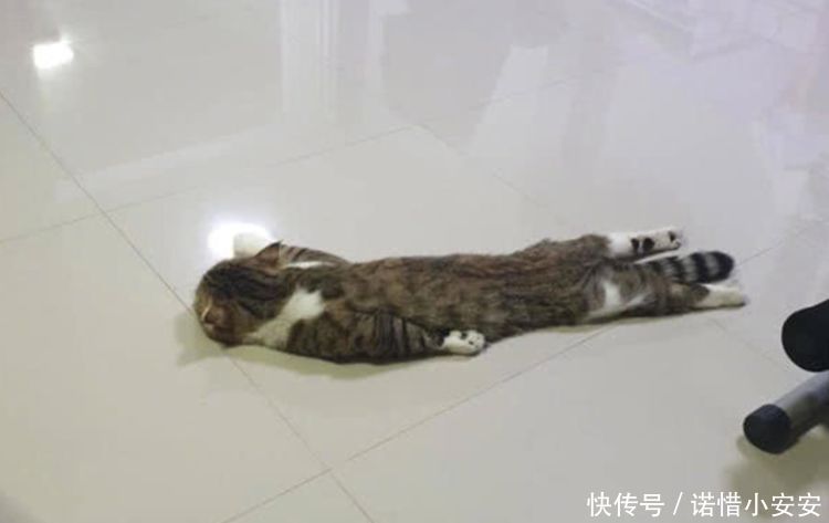 网友原来是个粗神经,但是自从上次差点把自家猫咪踩死以后就变得细心了,因为地面暖和,猫咪就每天摊在地上,而且它的场所还不固定,这一秒在客厅,下一秒或许就瘫在卧室地上了,每每看见它躺尸的模样网友都哭笑不得。
