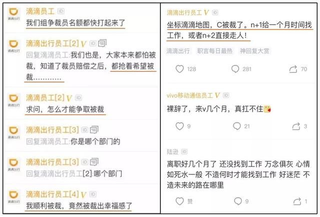 虽然很多滴滴的同学并不介意,甚至开始争抢起裁员的名额来,因为滴滴的人性化裁员“待遇”还是蛮优厚的,可以选择N+1然后一个月的找工作时间或者N+2直接走人。这对于一些准备在年后跳槽的员工来讲,当然是一个再好不过的选择了。