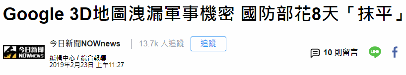 [分享]台媒:台“国防部”花了8天 找谷歌“抹平”地图