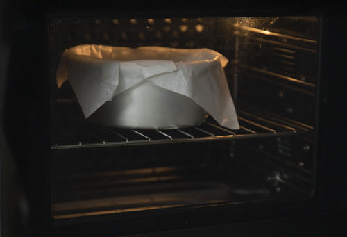 13、送入提前预热好的烤箱中层,上下火150℃,烘烤50分钟。