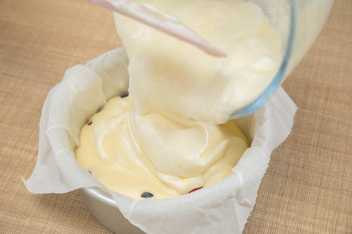 11、接着用刮刀将面糊慢慢倒入模具中。
