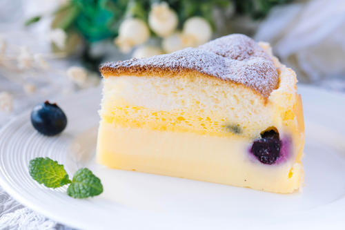 ②低温、长时间烘烤。通过慢慢地加热,让热量慢慢地进入蛋糕体材料,就会形成中间的奶油层,底部的布丁层也会非常嫩滑。