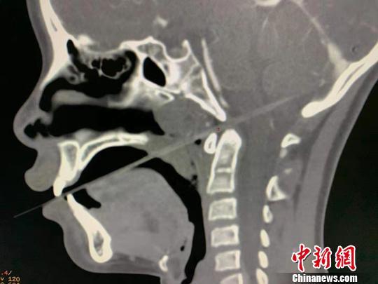 2月24日下午,10岁女孩妞妞(化名)在当地游乐场里边吃热狗边玩蹦床,不料一个趔趄,热狗的竹签从她的口腔直戳进去,深深地扎入喉咙里。妞妞被紧急送往当地医院,医生拍片检查后发现,竹签已扎进颅内。