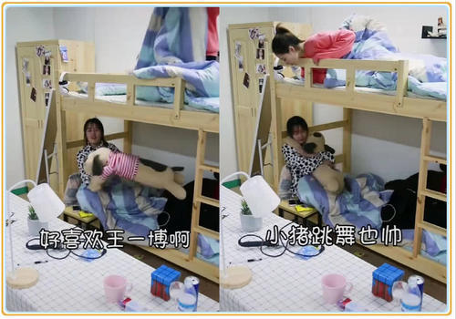 首先我们可以看到两个小姐姐已经躺在了自己的床铺上,但是说话一直都是不断的,这不从图片中我们可以知道她们正在聊有关于明星的,每个人都说自己喜欢的明星好,而且跳舞还特别的帅,毕竟在上学的时候谁也会有一个自己喜欢的明星。