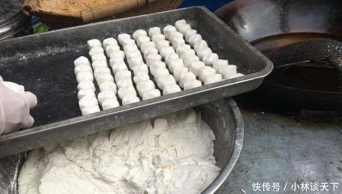据悉,大爷做的是一种叫做“糖油粑粑”的小吃,熟悉的人都知道,这种小吃是湖南长沙的一种特色小吃,在我们这边比较少见,其具体的做法也非常的简单,只需将揉好的面团分成小块,随后将这些小块放到油锅里面油炸即可
