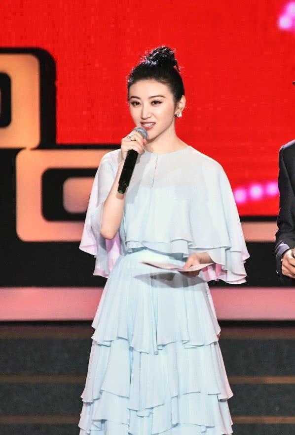 景甜似乎对这样的裙子情有独钟,秀发扎成了丸子头的发型,身穿的是一袭淡蓝色蛋糕裙,多层的设计增添了裙子的优美华贵感,这样的景甜给人一种优雅又不失灵动的感觉。