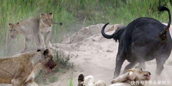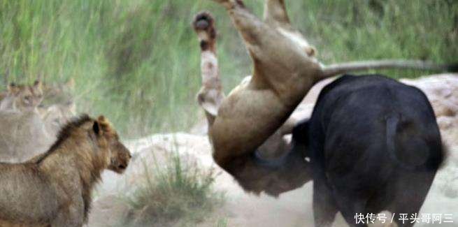 精彩还在继续,接着就看到一头狮子再次对着野牛发起了攻击,谁知道野牛毫不含糊的再次将狮子顶起 ?野牛这次直接就将狮子顶飞了出去,狮子摔在地上口吐鲜血!