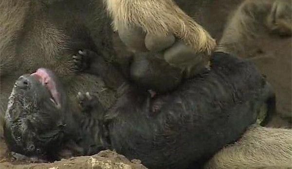 紧接着鬣狗将这泡屎抱了起来,这个时候人们才意识到自己看错了,原来刚刚的那一幕是鬣狗在生孩子!