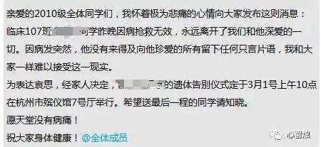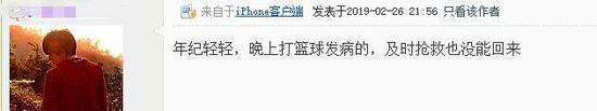 该网友称,根据同学们为他写的吊唁信,这名医生才27岁,在打篮球时因主动脉破裂而不幸去世。