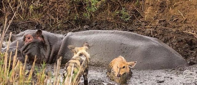 要说这鬣狗是真的不敢轻举妄动,河马生起气来就算不张嘴,都能把猎狗给压死。虽然小鹿的突然闯进吵到河马,但是总归是躲过了鬣狗的追杀。接下来,就需要考虑怎么从泥泞中拔出腿了吧……