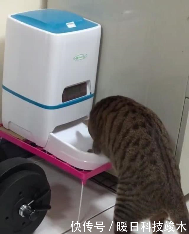 网友家养了只猫,起初它还小的时候,网友看猫那么瘦小,心想:一定要把猫养的白白胖胖。于是每天就给猫吃很多的东西,什么猫粮,营养品等等之类,最后导致猫越长越胖,越长越大。后来网友一看猫都长得这么胖了,要是在患上什么疾病到时候可就不划算了,于是他就决定给猫减少食量,控制一下它的体重,所以就买了一个专门给猫喂食的机器,它可以定时定点的给猫喂食,这样可以防止猫吃太多。