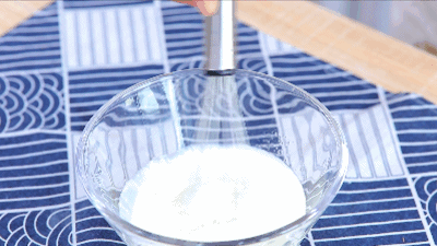 *45克蛋白一定要按克称取,最好不要用鸡蛋的个数来衡量。蛋清太少,会影响凝固效果,太多会有蛋腥味,吃起来口感不够细滑。