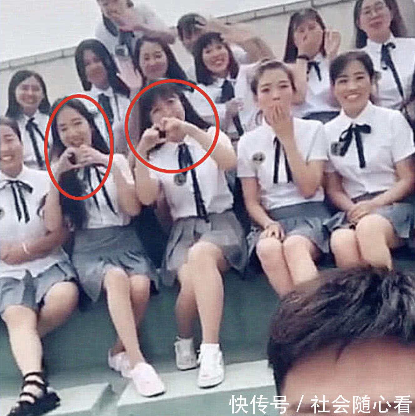 这群女生也是很配合,纷纷做出了比心的手势,对着镜头开心的笑了起来。