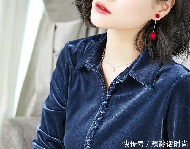 金丝绒衬衫女新款宽松长袖复古chic上衣