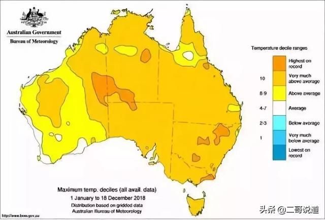 热浪于11月下旬开始,1月中旬达到极致,全国平均温度连续五天超过40摄氏度,阿德莱德甚至达到46.4度,创80年来澳大利亚所有州首府中最高气温。