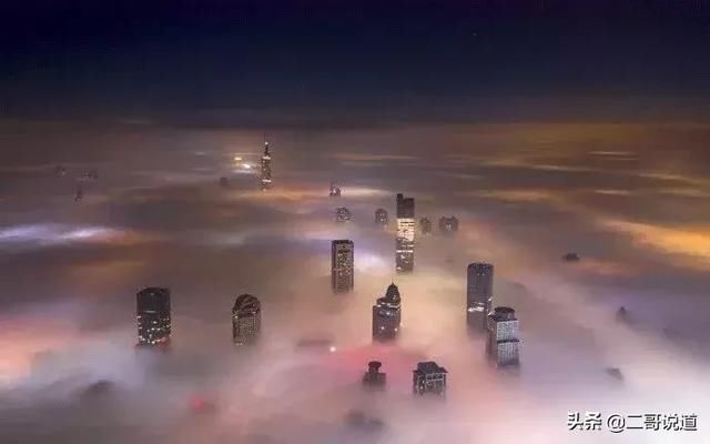 华灯初上,一座座摩天大楼的灯光渐渐亮起,雾霾笼罩在建筑物周围,十分魔幻,就好像是哪个好莱坞大片的场景。