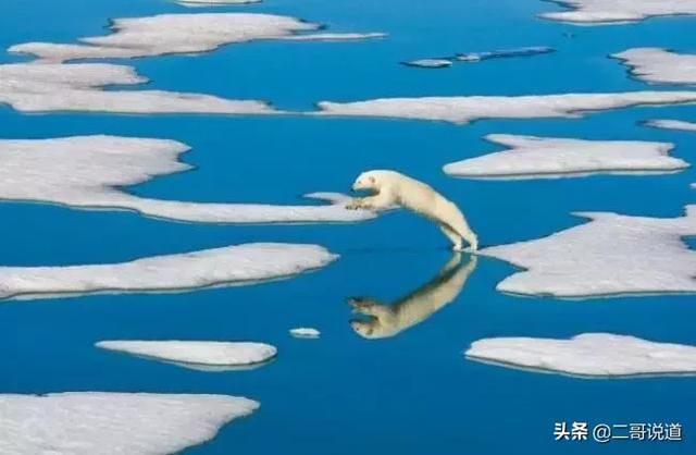 冰层的融化导致北极熊的落脚之处变得越来越少,它们能做的只有不停的游啊游,到更远的地方觅食,直到找到下一块浮冰,作为短暂的休憩地。