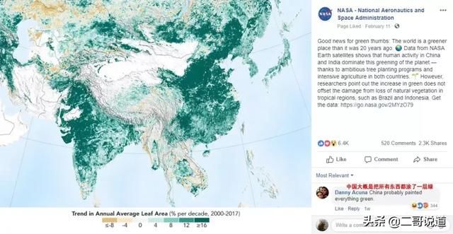 最该感谢的就是:中国和印度。尤其是中国,我们国家的新增绿化面积,达到四分之一个亚马逊雨林。