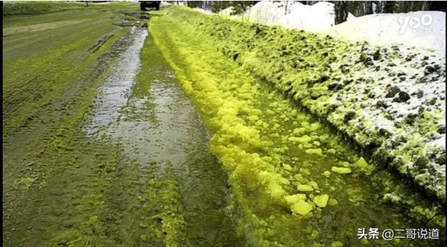 官方发表声明称,这些绿色的雪看似清新,实则有毒,由于当地一个金属工厂的污染物泄露,暴露在空气中,将雪染成了绿色。