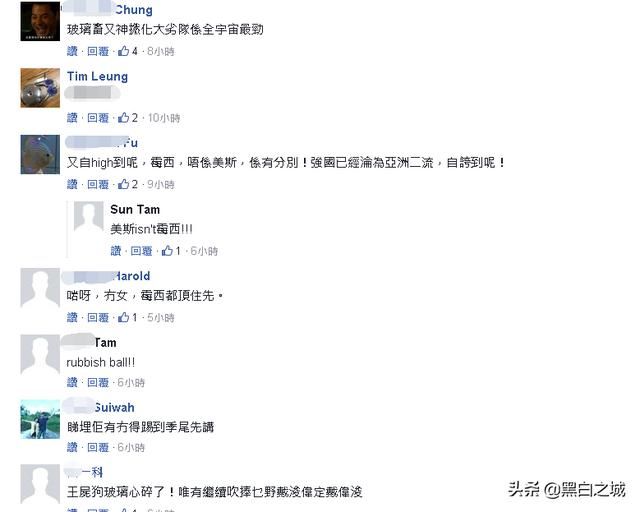中国香港媒体人潘小涛也转发了武磊进球的新闻,但是底下的评论区同样被香港球迷“攻陷”。“稍微有点常识的都知道这个球没那么漂亮,还吹到征服西甲?”“我只记得中国队两次都赢不了港足。”“他家乡牌坊上刻四个大字:夜磊自大。”“凡事都有第一次:进球、红牌、断腿、解约……陆续都会应验。”