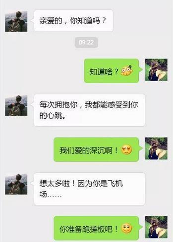 和和的搞笑聊天记录:丈夫得意地对老婆说:“今天我去干洗店洗衣服,服务员在衣服的签条上打了三颗星!”老婆不解:“那是什么意思?”“这说明我的衣服档次很高,提醒工人要小心操作,不能损坏。”丈夫说。第二天,老婆拿着单子去干洗店取衣服,特意提醒:“就是那件打了三颗星、档次最高的衣服。”服务员很快就找到了衣服,一边把衣服交给她,一边微笑着说:“我们在签条上打了三颗星,是提醒工人衣服很脏,要多洗几次……”