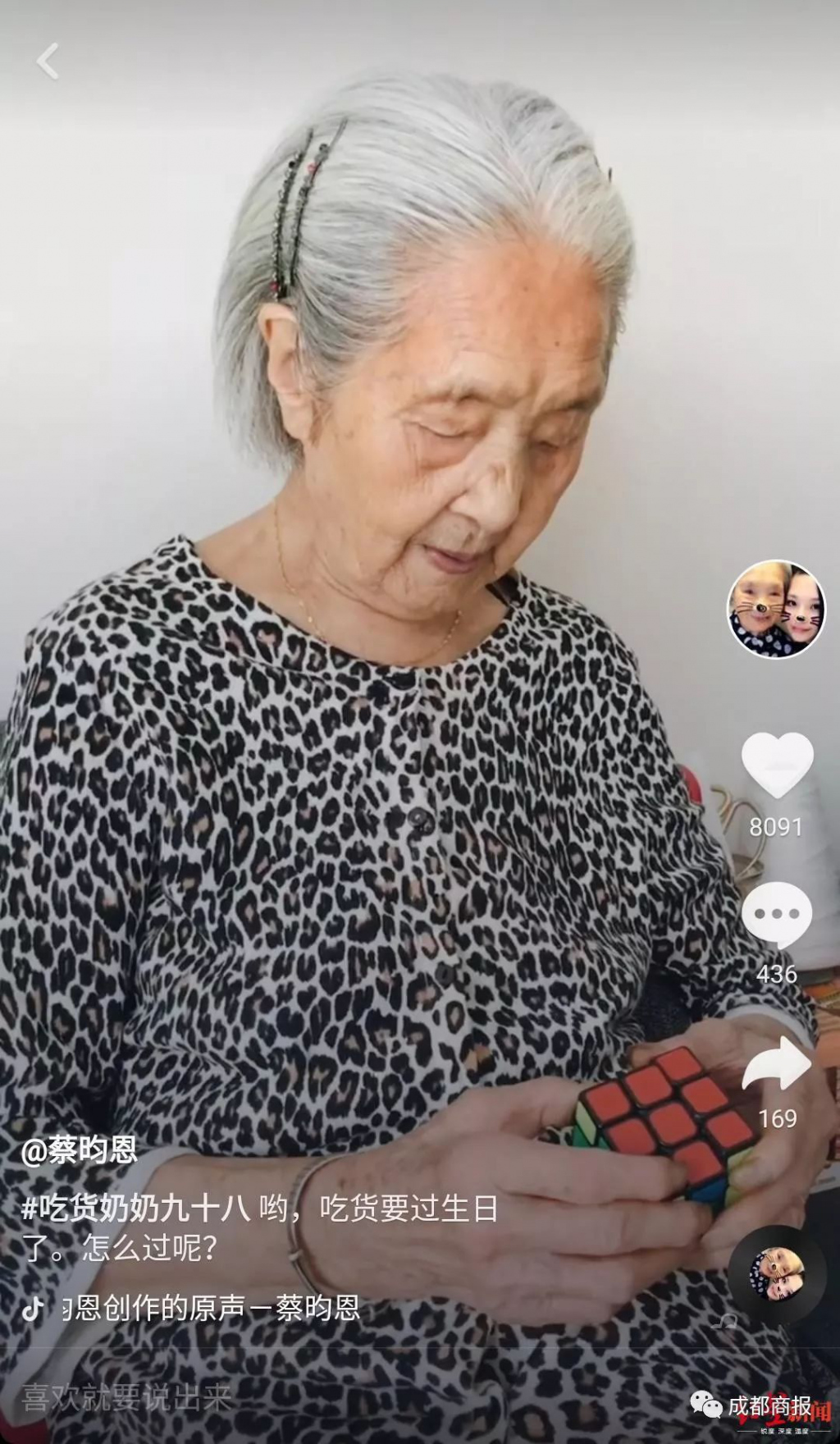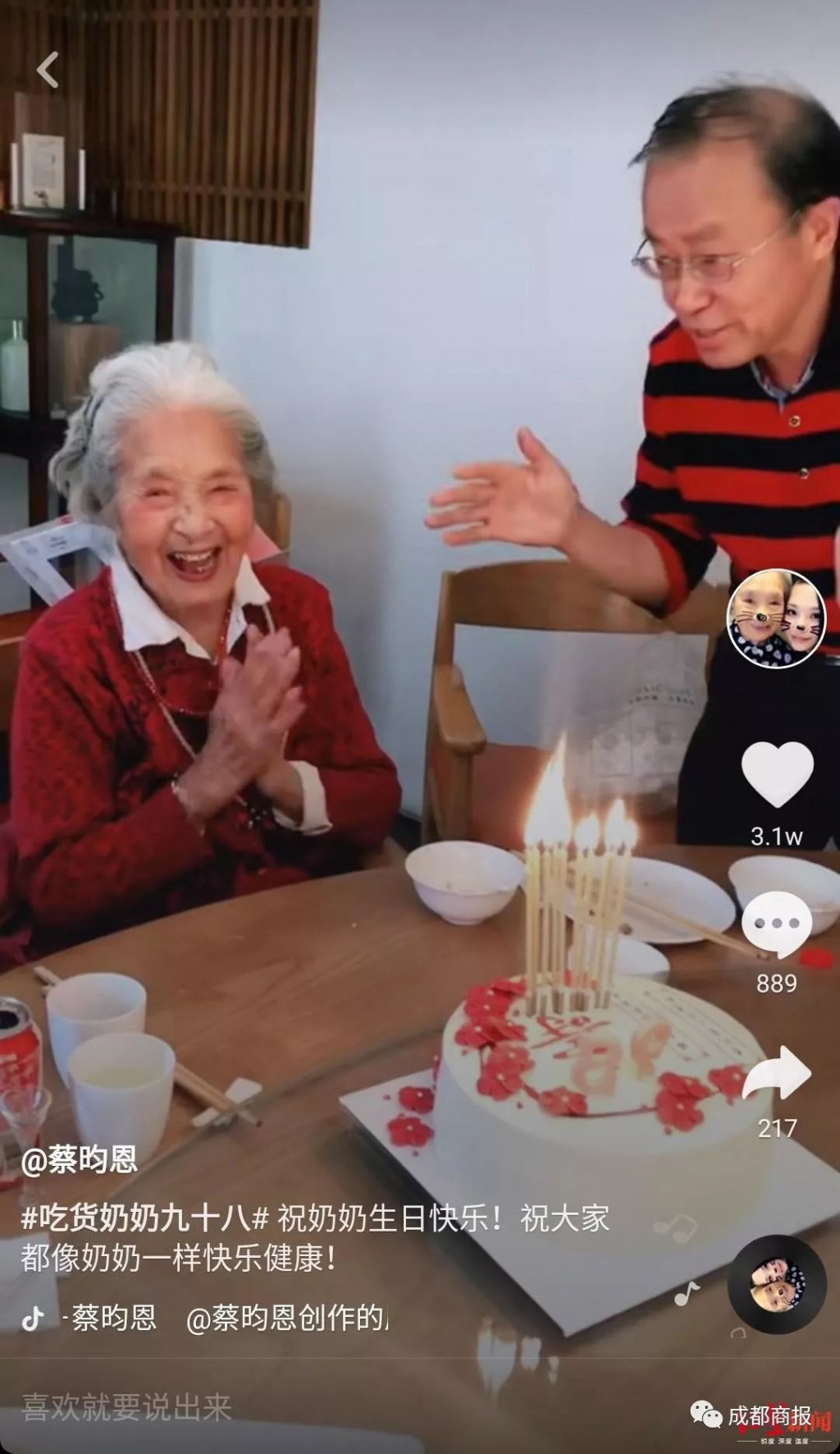 ∆去年农历 9 月过 98 岁生日蔡女士觉得,通过网络视频,能让更多人认识奶奶。今年春节前后,蔡女士和家人带着奶奶逛太古里、万象城的时候,"就有很多人来找她合影,喊她 ‘ 奶奶 ’,她虽然不太懂为什么,还是 ‘ 笑嘻了 ’。"蔡女士曾经告诉奶奶,很多网友都喜欢她,夸她可爱,在视频里奶奶埋下了头,接着哈哈大笑,"可爱,就是乖嘛,长得好。"