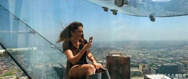 安全地从大楼外侧游览LA的美景!但这拐弯的设计,真心让你看不到尽头,你真的敢吗~~?如果你跟8号床一样,是个极度热爱冒险的人,那空中玻璃滑梯绝对能给你一次肾上腺激素飙升的全新体验!!参观的游客将会铺上特制的毯子,坐在毯子上就这样咻~的一下,滑下去~~当然通常不会咻的一声~~而是,啊~啊啊~~~!@!!!我看了半天图,发现最外侧的玻璃才是最吓人的,谁知道我靠上去会不会松动啊~~呃。。。想到这里,已是一手的汗了~~当然也有人泰然自若,就这样像参加婚礼庆典一样,高雅地~~下来了~~~俯视图是酱紫城市的万丈深渊~据玩过的网友po文,在滑梯上企图控制毯子的行进方向是不可能,你只能顺着滑梯这样下来。。还有人,有心思自拍!!妹纸用灿烂的笑容和秀丽的长发告诉了我们:老子又焕发了青春!(图片来源于网络)