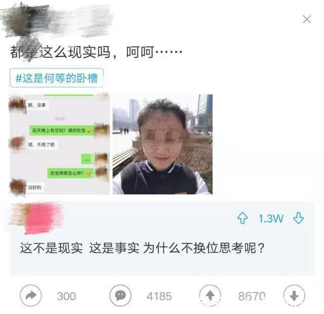网友一:这也不能怪那个男的啊,现在这个时代谁不看脸呢?如果恋爱之前没长痘痘,恋爱之后才有那还好说。