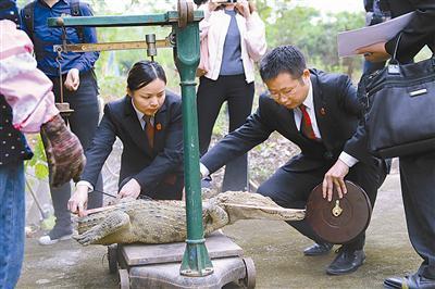 “在正式查封前,我们向饲养员询问了很多注意事项。比如深入到池塘中心进行清点时务必不能背靠栅栏,以防鳄鱼从池塘跃起攻击。”说起这些,执行干警李臻栋还心有余悸。