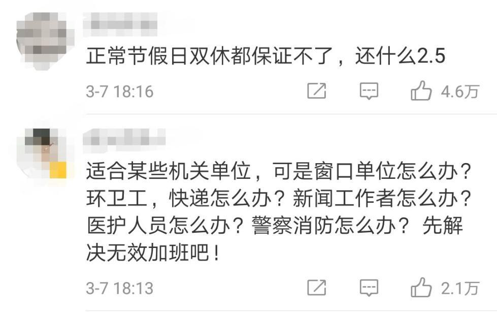 今年两会上,有全国人大代表建议全国推广一周2.5天小长假,网友却说...
