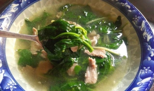 这样一道美味营养丰富的枸杞叶瘦肉汤就完成了,如果有朋友上火了可以煮来喝喔。