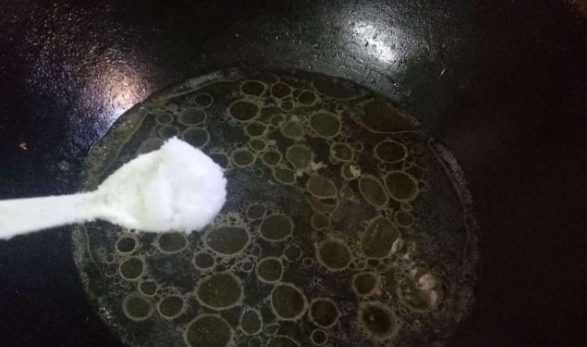 第三步:把锅烧热,然后添加油,倒入适量的清水,在水里添加适量的盐后盖上盖子等待大火烧开