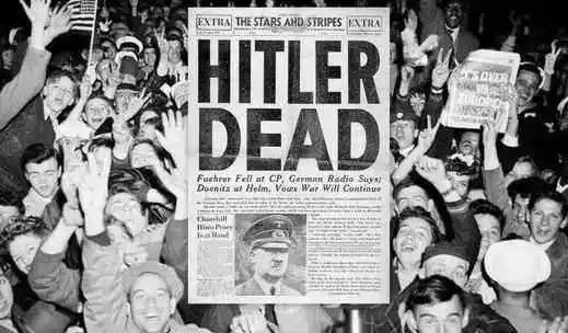 1945年4月29日,希特勒见大势已去,匆匆在地堡中与情妇爱娃结婚。后让爱娃服下氰化物自尽,自己则一枪洞穿了头颅自杀和士兵一起被焚烧。这一直是大家公认的官方说法,可是当时确实无法准确辨认遗体。