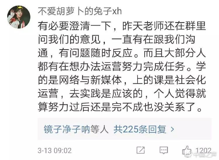 也有学生认为,比起课本上知识,在校学习也应注重实践,有时候一些课程或课间作业看似无厘头,背后也有老师们的良苦用心。不少走上工作岗位的同学,在一段时间之后才体会到当年自己曾吐槽的那门课程所教会自己的东西:“大部分同学有在想办法完成这样一个运营任务,学的是网络与新媒体,我觉得去实践是应该的,自己觉得就算努力过后完不完成任务也没所谓,你去实践了很重要。”