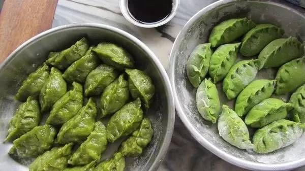 做法:把猪肉或鸡肉以及艾草分别剁碎后加入盐、味精、生粉搅拌成馅,包成饺子煮熟即可。