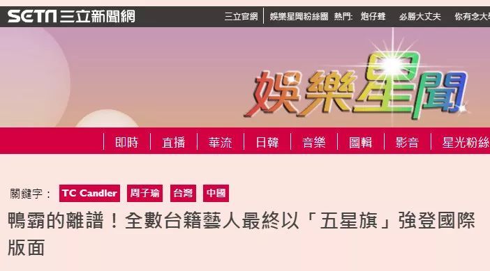 电影评论媒体“TC Candler”日前举办亚太区“年度最美脸孔票选活动”,被提名者的照片被公布在官方社交平台,所有进入投票阶段的台湾地区艺人均被标注中国国籍,照片的右上角带有五星红旗的标志,岛内绿媒及绿营网友因此炸毛,要求陆委会协助处理。16日票选结果公开,照片上的标注没有发生任何变化,于是,绿媒又扎心了。