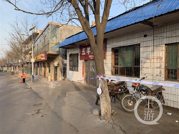 枣岭乡主街北侧近600米房屋拉上警戒线,不准任何人靠近。摄影/上游新闻见习记者 贾晨
