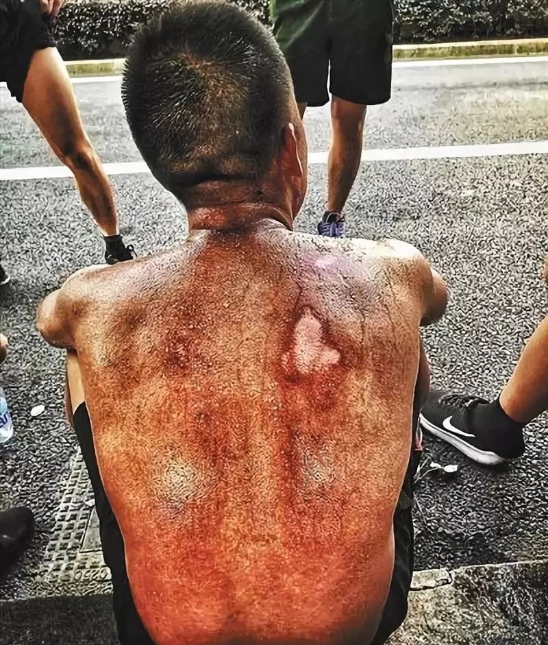 这是福州消防支队沈伍呷在一次负重长跑训练后的照片