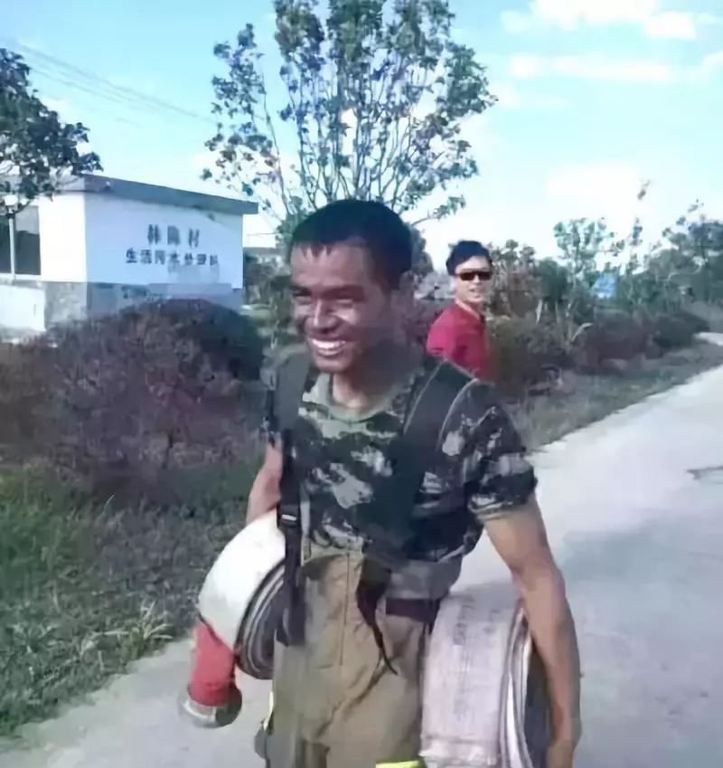 这是温州苍南消防战士张晓方,他被龙港消防中队录取成为一名合同制消防员时已经26岁了。他说他从小就喜欢军人,喜欢现在的生活状态,有一帮出生入死的兄弟,有一种使命感。被战友拍下这张照片那天,他连续扑灭了六场火,在归队路上,他露出了开心的笑容